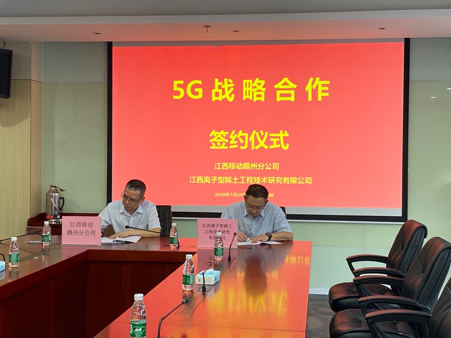 7月10日上午,江西離子型稀土工程技術研究有限公司與江西移動贛州分公司簽署5G戰(zhàn)略合作框架協(xié)議。江西離子型稀土工程技術研究有限公司總經(jīng)理王林生、總經(jīng)理助理黃紫彬,江西移動贛州分公司領導康世濤、劉小斌出席簽約儀式,相關部門列席簽約儀式。