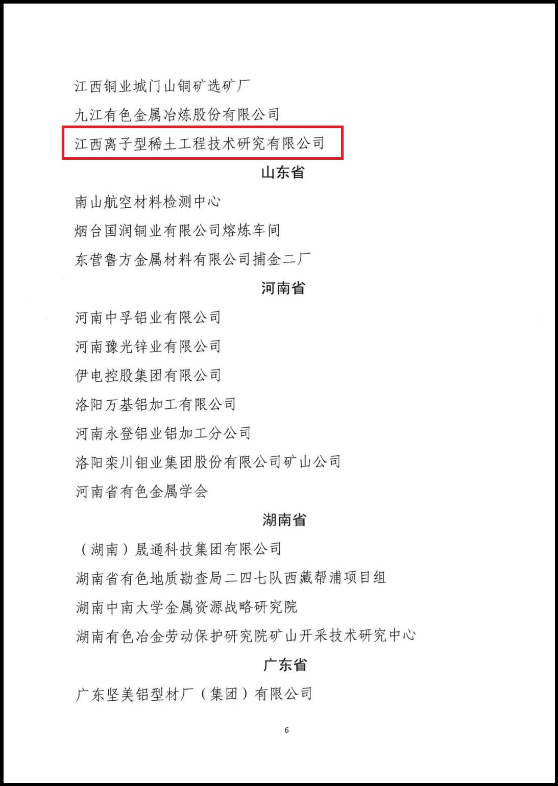 近日,人力資源社會(huì)保障部、中國(guó)有色金屬工業(yè)協(xié)會(huì)、中國(guó)黃金協(xié)會(huì)聯(lián)合印發(fā)《關(guān)于表彰全國(guó)有色金屬行業(yè)、黃金行業(yè)先進(jìn)集體、勞動(dòng)模范和先進(jìn)工作者的決定》(人社部發(fā)〔2020〕349號(hào)),授予國(guó)家離子型稀土資源高效開(kāi)發(fā)利用工程技術(shù)研究中心(江西離子型稀土工程技術(shù)研究有限公司)“全國(guó)有色金屬行業(yè)先進(jìn)集體”榮譽(yù)稱號(hào)。